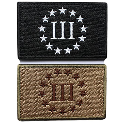 Bundle 2 Pieces - Three Percenter Tactical Morale Patch with Backing Multitan Black White Decorative Embroidered Appliques 2" High By 3.2" Wide