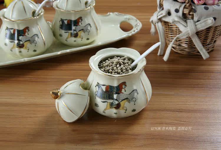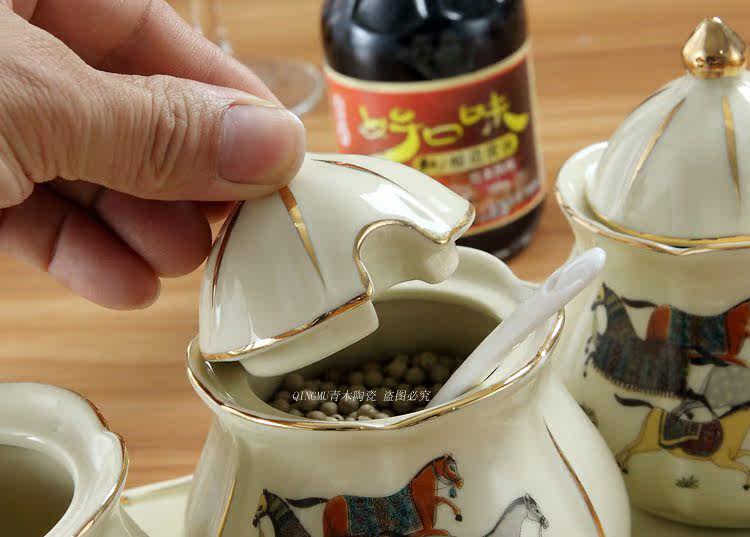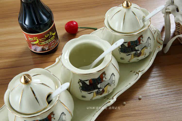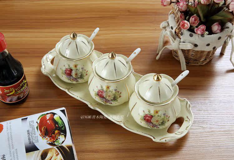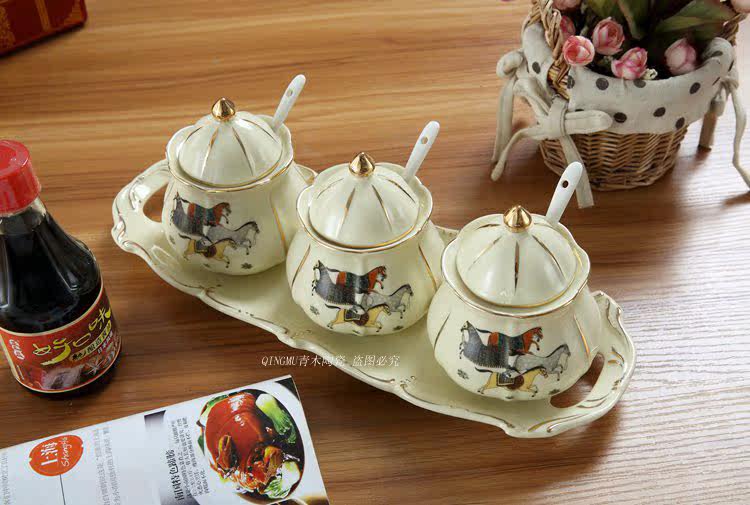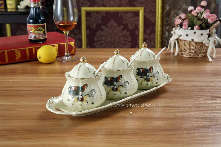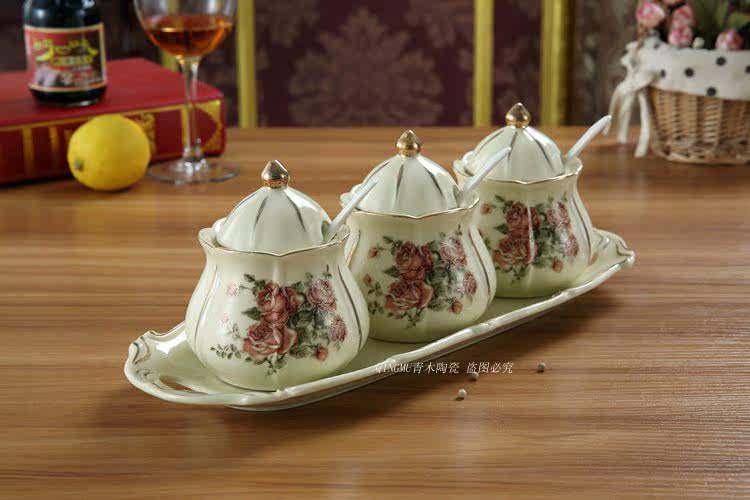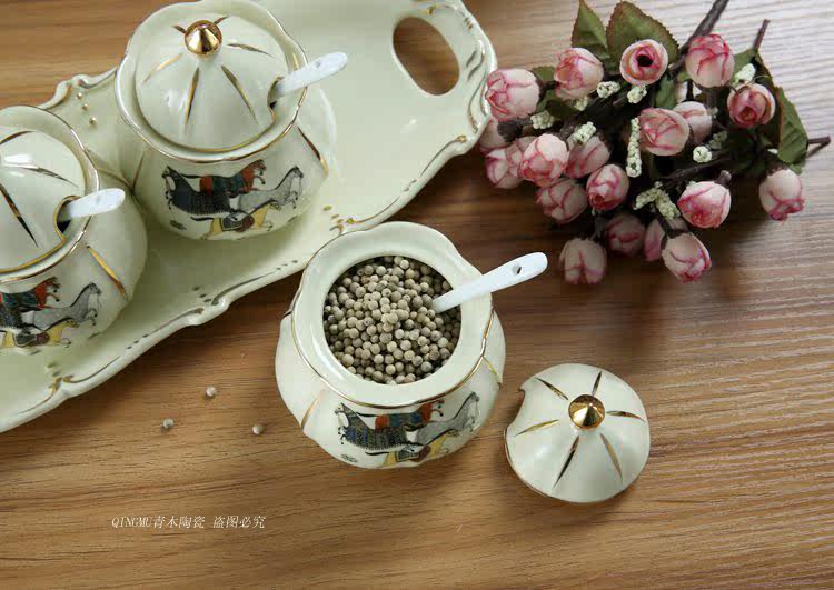 【组成】:3罐子 3盖子 3勺子 1陶瓷底盘