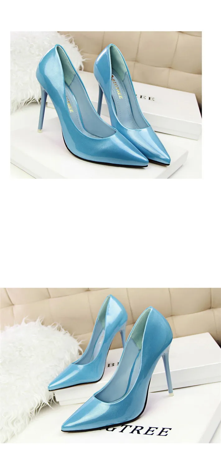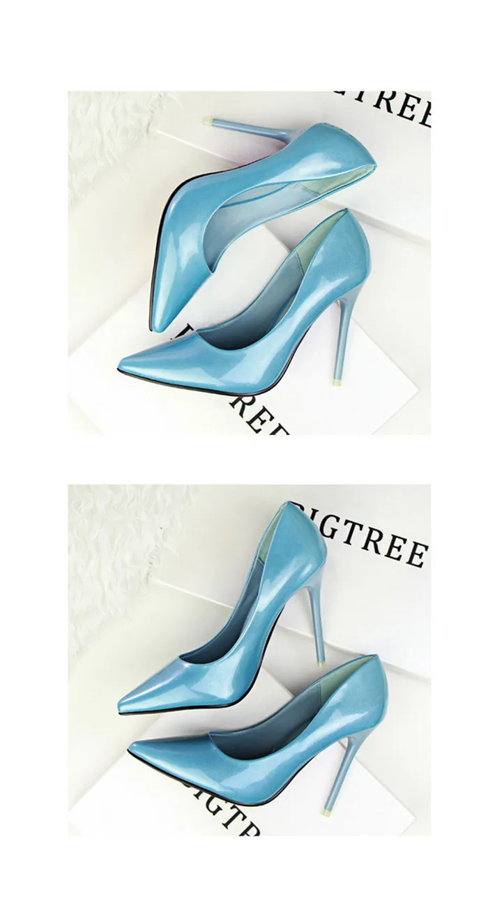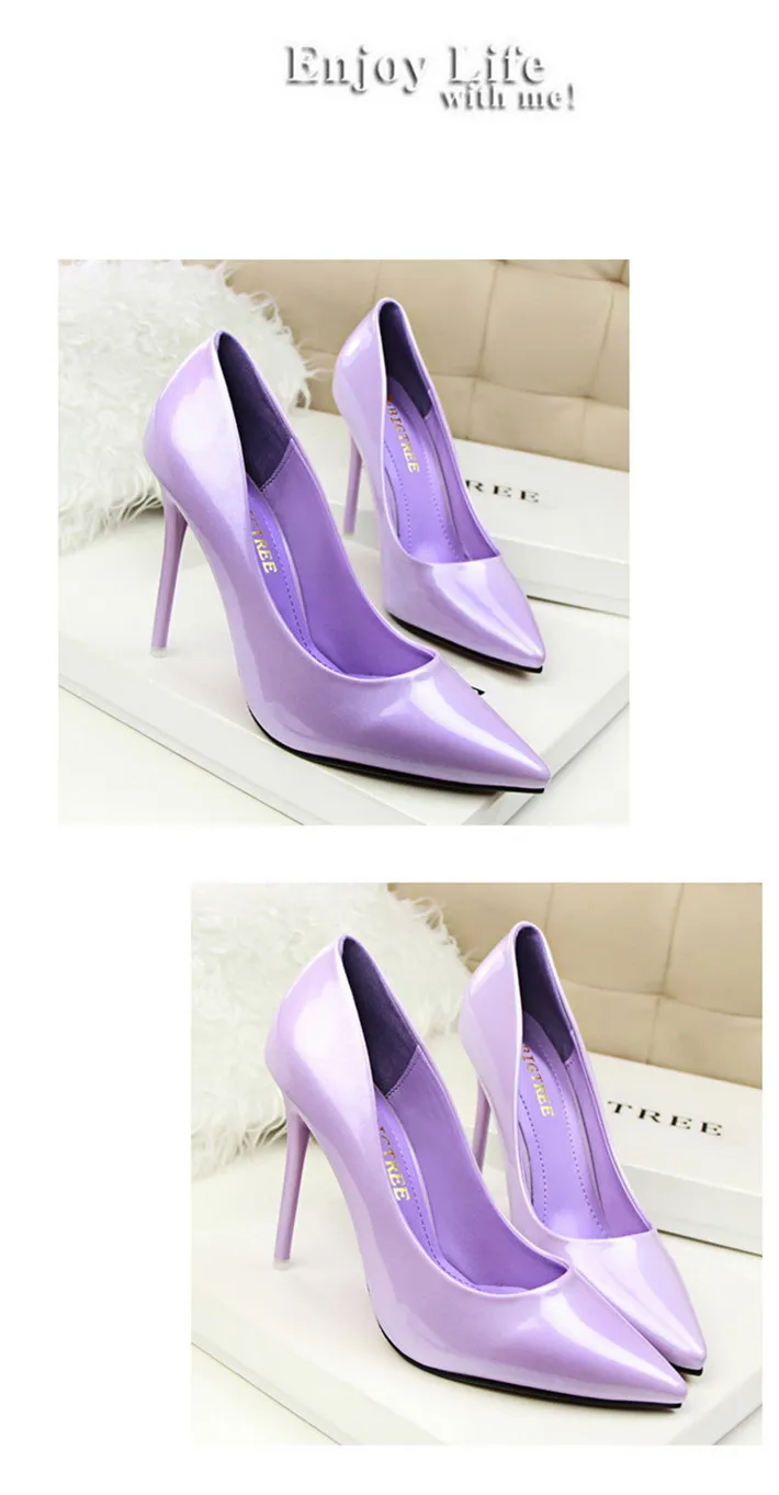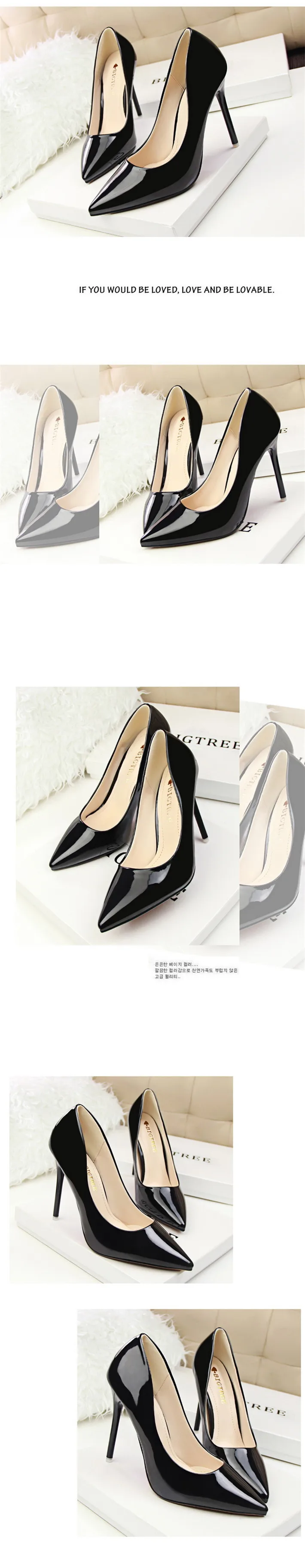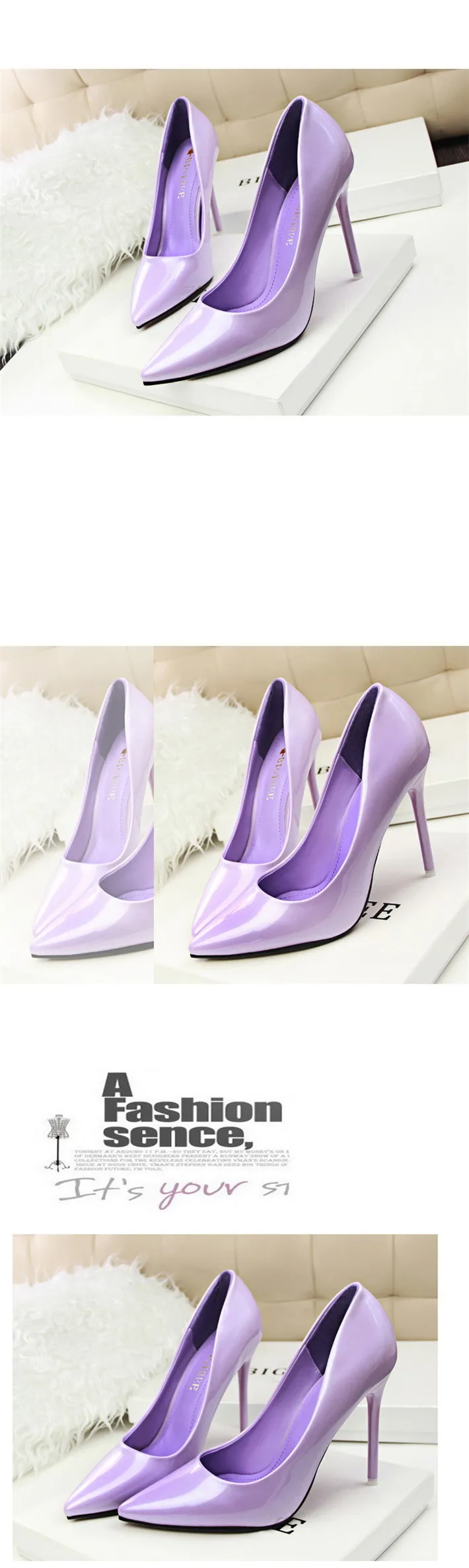 Item:Concise Fashion Solid Patent Leather Shallow High Heels Shoes