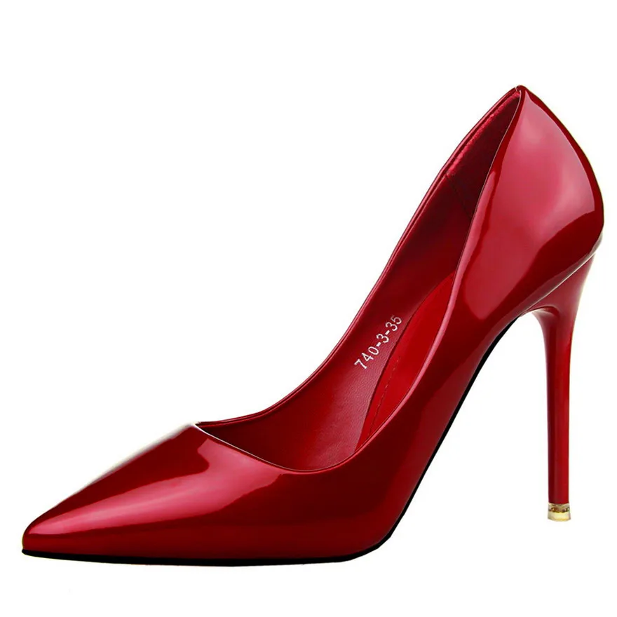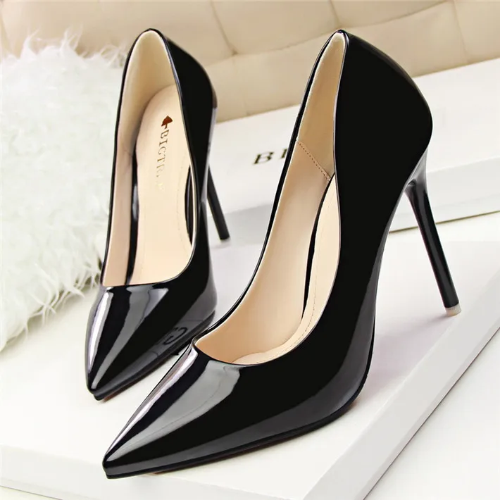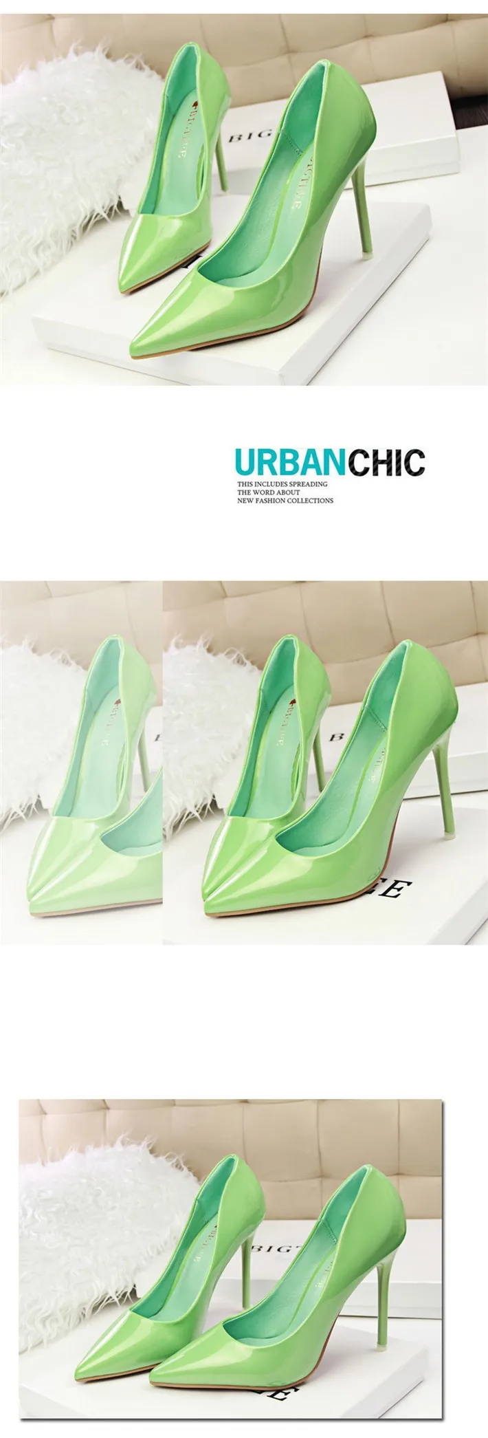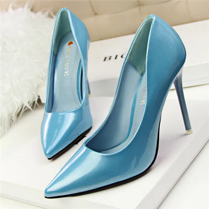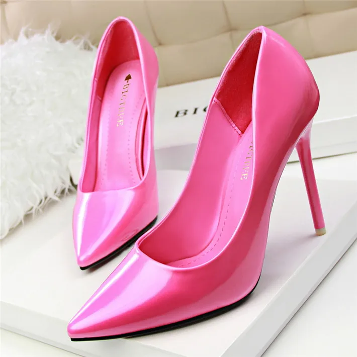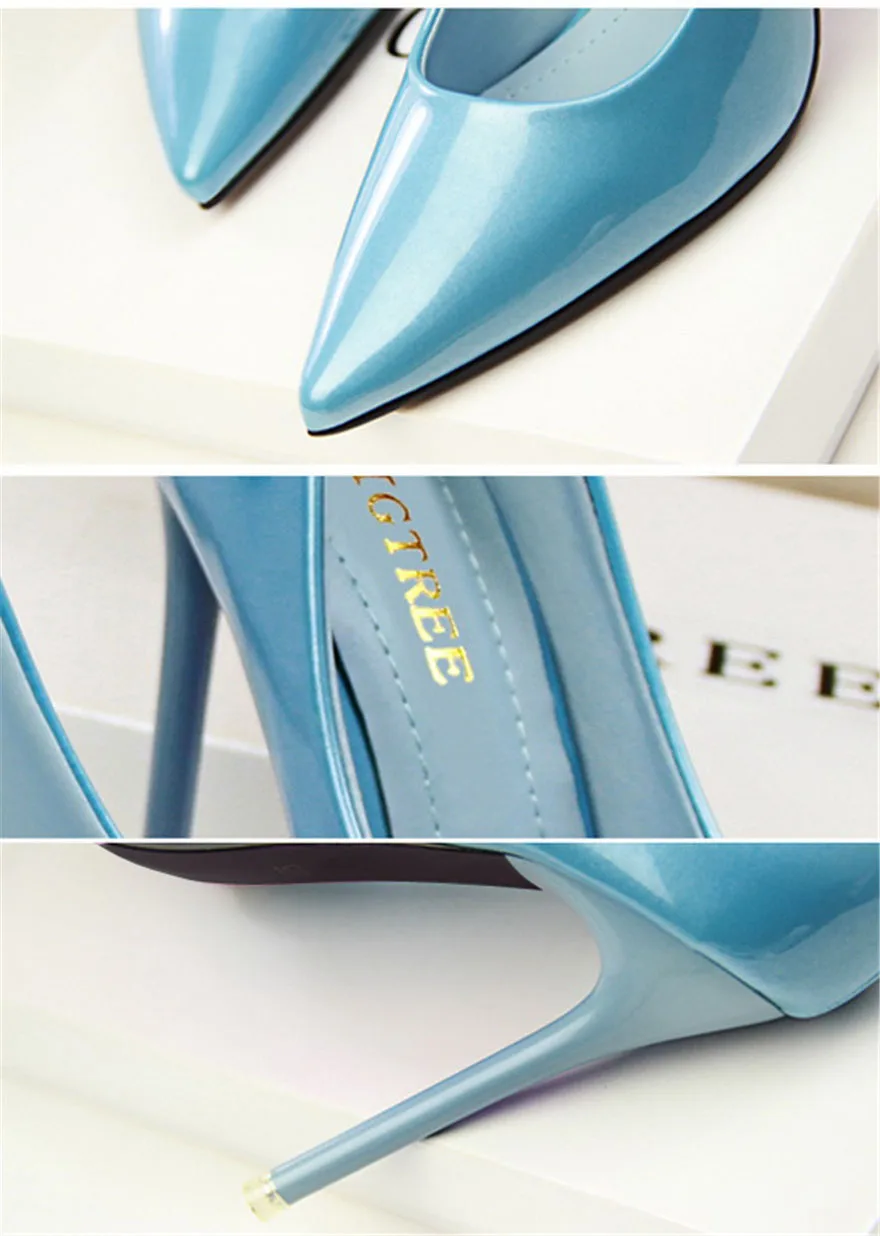 Item:Concise Fashion Solid Patent Leather Shallow High Heels Shoes