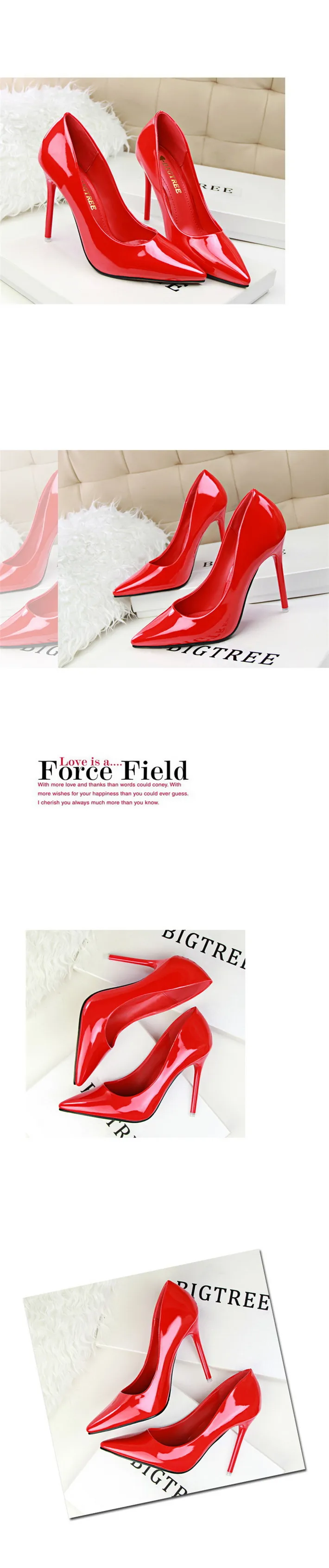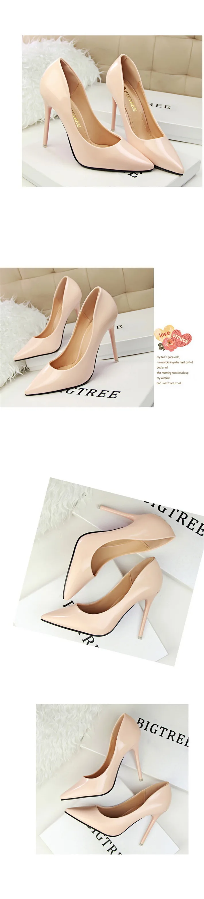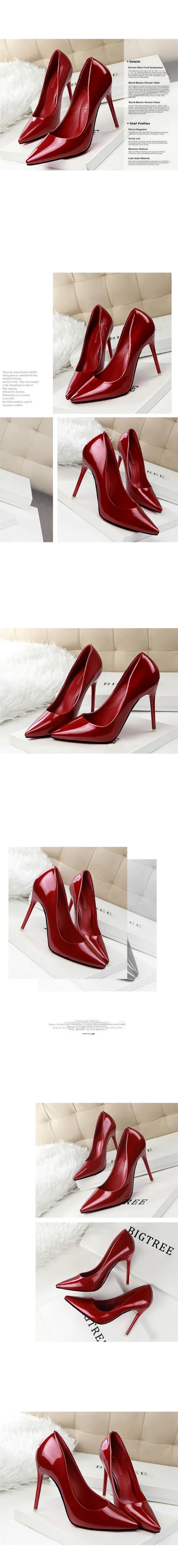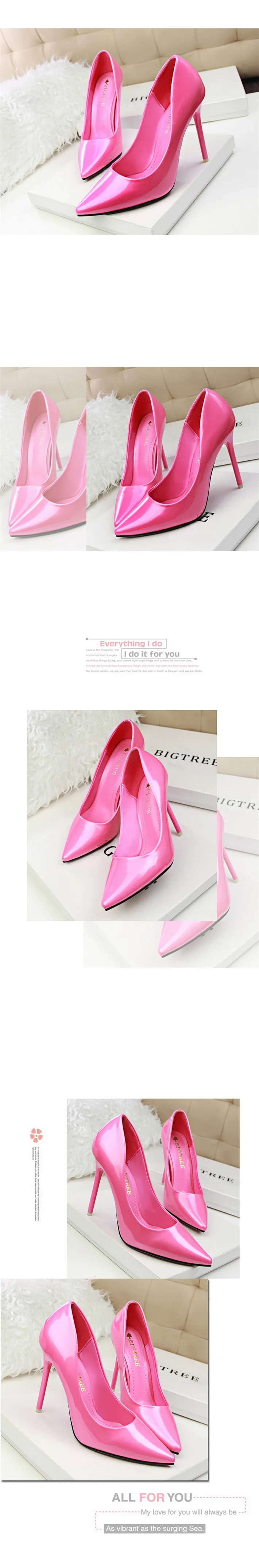 Item:Concise Fashion Solid Patent Leather Shallow High Heels Shoes