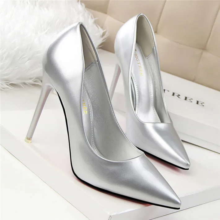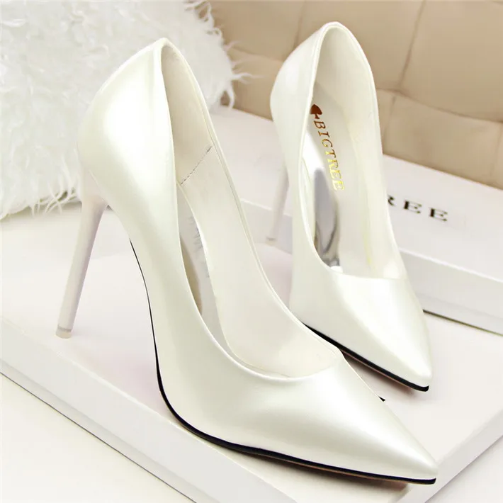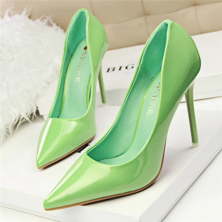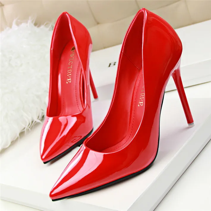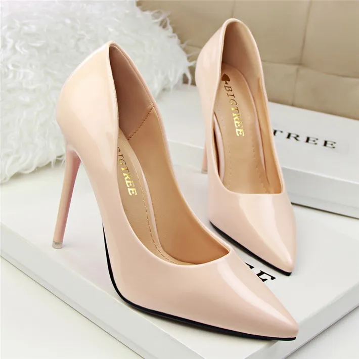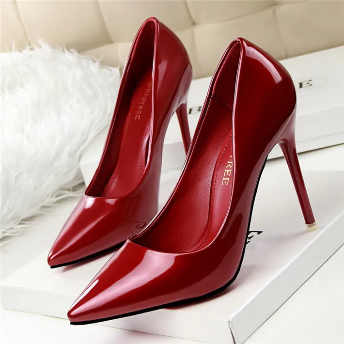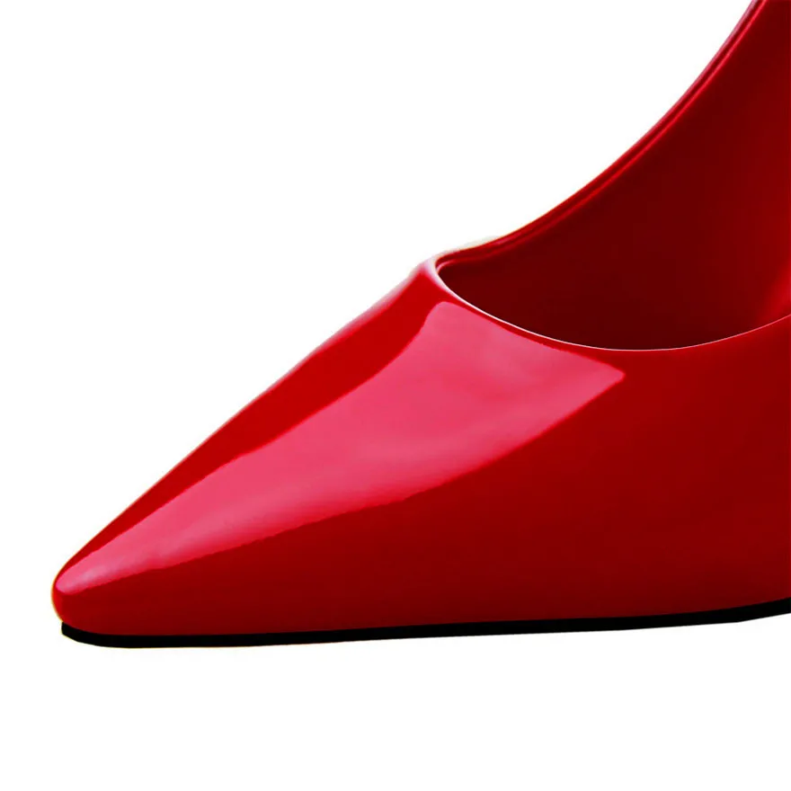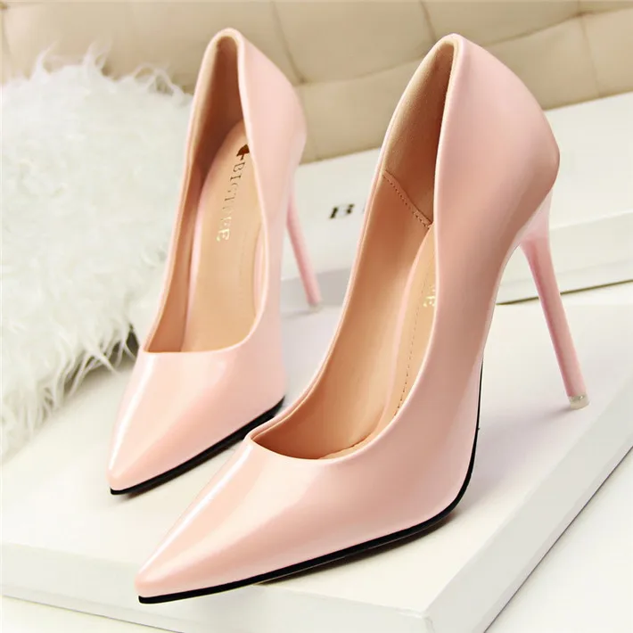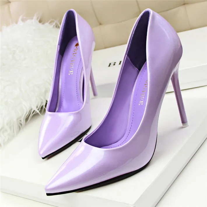 Item:Concise Fashion Solid Patent Leather Shallow High Heels Shoes
