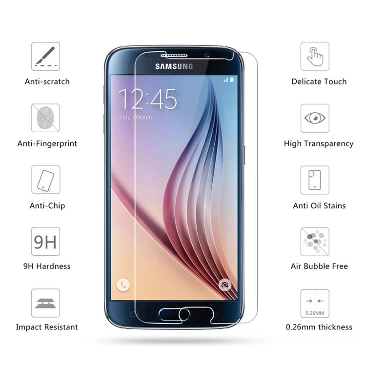 2.5D 0.26mm 9H Premium Tempered Glass Screen Protector For Samsung Galaxy S6 G9200u0026nbsp;Toughened protective film