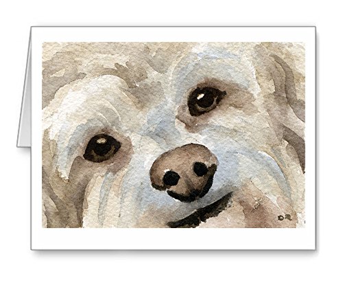 -. Feature : "Cockapoo" artwork by watercolor artist DJ Rogers. / Note card size is 4.25 x 5.5 inches / Matching white envelopes included. / Note cards are blank inside for your personal message. / Suitable for framing.