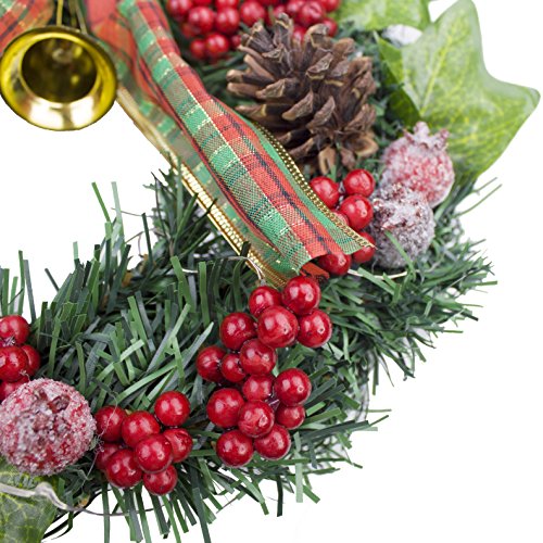 LTWHOME Artificial Green and Red Hand Made 9" Christmas Wreath with LED String Lights