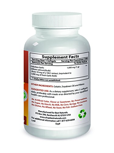 -. Title : Best Naturals Odorless Garlic 1000 mg 240 Softgels