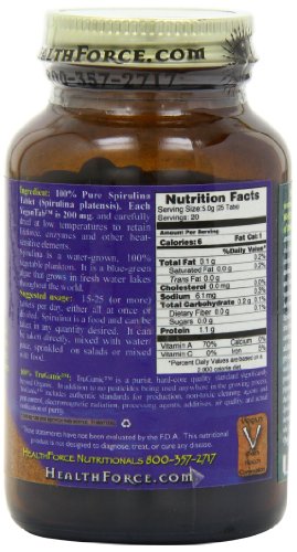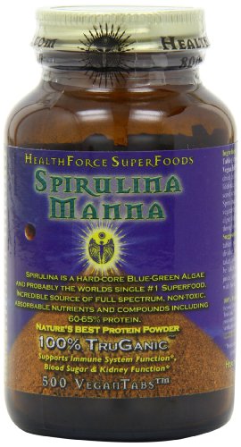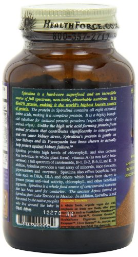 Spirulina is a hard-core superfood and an incredible source of full spectrum, non-toxic, absorbable nutrients. It is 60-65% protein, making it the world's highest known source of protein.The protein in Spirulina contains all eight essential amino acids, making it a complete protein. It is a highly beneficial substituted for isolated protein powders (especially those of animal origin). Unlike the high uric forming protein from animal products that contributes significantly to osteoporosis and can cause kidney stress, Spirulina's protein is gentle on your kidneys and its Pycocyanin has been shown to actually help protect against kidney failure. Spirulina provides high levels of chlorophyll, and also contains iron (non-toxic in whole plant form), vitamin A (as non toxic beta-carotene), a full spectrum of carotenoids, B-1, B-2, B-6, E, and K. In addition, Spirulina provides a vast array of minerals, trace elements, phytonutrients and enzymes. Spirulina also offers beneficial fatty acids such as DHA, GLA and others which have been shown to possess protein anti-viral activity, chlorophyll, and other beneficial pigments. Spirulina is a whole food source of concentrated nutrients that has been used for centuries. The ancient Aztecs thrived on Spirulina from Lake Texcoco in Mexico. In addition, Spirulina is still harvested by the native people who live around the lake in Chad, Africa. It has 300% more calcium than whole milk,2300% more iron than spinach, 3900% more beta carotene than carrot, 50-60% Protein, 375% more protein than tofu.