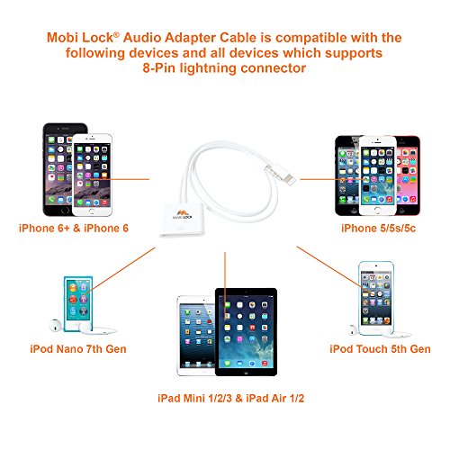 - Title : Mobi LockTM White 8 Pin to 30 Pin Audio Dock Cable / Connector / Adapter / Converter Designed for Apple iPhone 3 / 3GS / 4 / 4S to Apple iPhone 5 / 5S / 5C / 6 / 6 Plus, iPad 4, iPad Air 1 /2, iPad Mini 1 / 2 / 3, iPod Touch 5, iPod Nano 7 for Audio Docking stations, Charging and Syncing - by Mobi LockTM