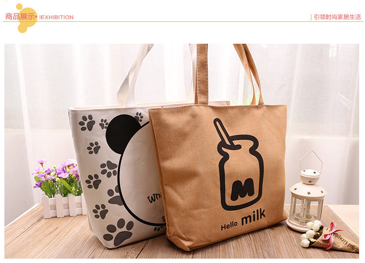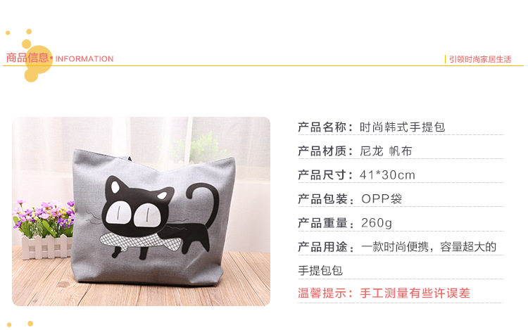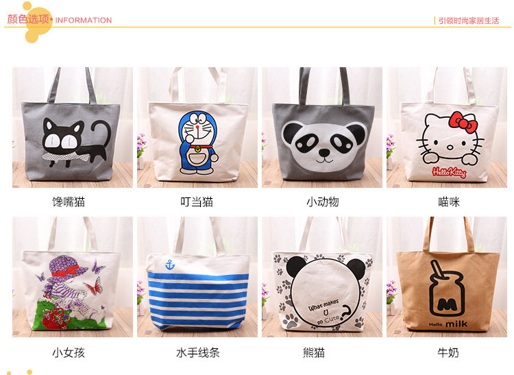 卡通时尚单肩包购物袋韩版手提包双层帆布包休闲背包新款女包