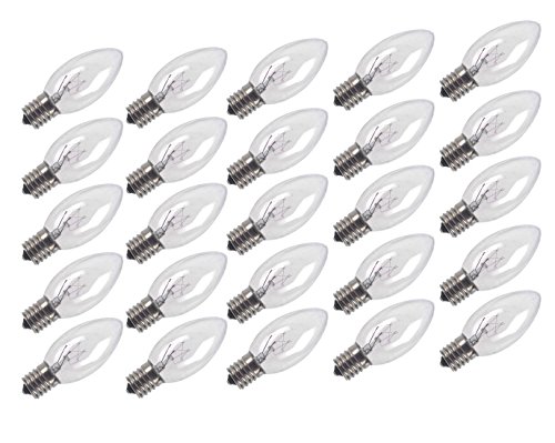 25 Pack C9 Transparent Christmas Replacement Bulbs for Christmas Outdoor Patiao String Lights, Clear, E17/C9 Intermediate Base, 7 Watt, by Brightown in USA