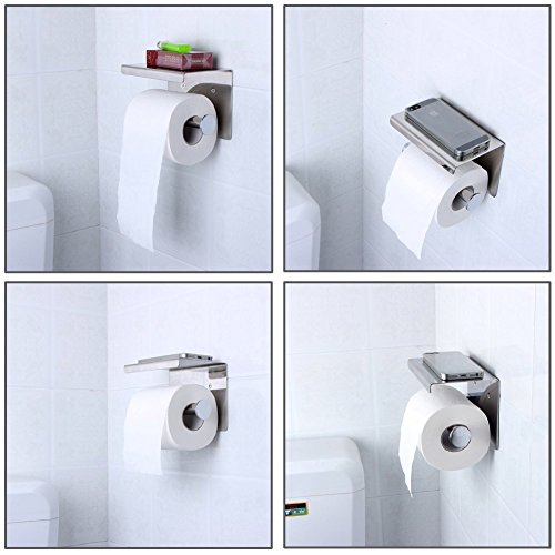 Angelbubbles Toilet Paper Holder With Phone Shelf SUS 304 Stainless Steel (Silvery)