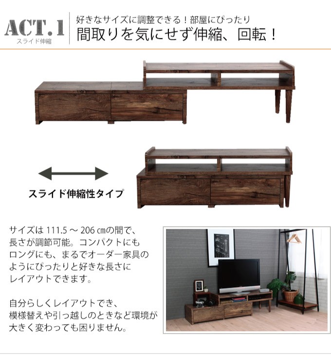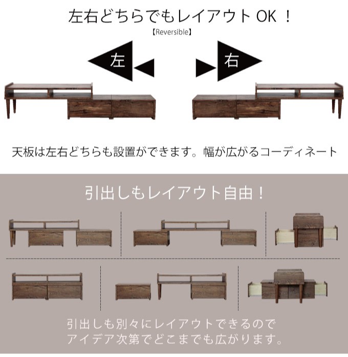 ●間取りを気にせず好きなレイアウトに調整できるTVボード