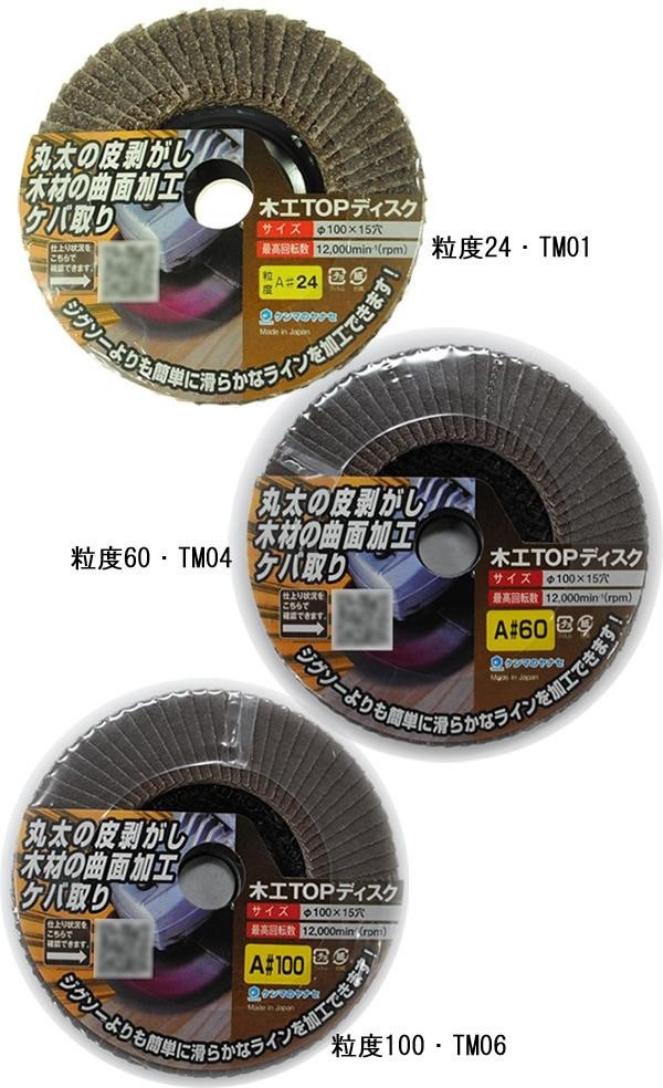 | 木材の荒削り~中仕上げまで可能なディスク。高い研削力があり、簡単に木材を削れます。丸太の皮はがし、木材の面取り、荒削り、補修、ケバ取りや、鉄・ステンレスの研磨にも使用可能です。 |
