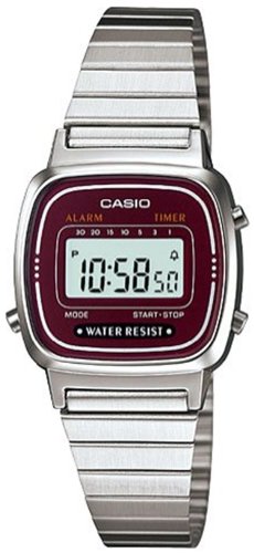Stopwatch function - 1/10 sec - 1 hour Elapsed time, split time and final time are measured with an accuracy of 1/10 of a second. The clock and able to measure up to one hour. 7 preset timer (up to 30 min.) The preset timer, seven preset play times for different sport, called up as required. The expiration of a game time an alarm sounds and the clock continues to count down automatically from the preset time. The measurement time can be up to 30 minutes. Daily alarm The daily alarm reminds you of events that recur every day, by emitting an audible signal at the set. Automatic calendar Once set, the automatic calendar always displays the correct date. Case in chromed stainless steel resin bracelet Durable and elegant: The stainless steel bracelet is a classic for watches. adjustable closure The closure can be adjusted with great ease to suit your needs to make it more comfortable. 2 Years - 1 Battery The battery supplies the clock to ca. 2 years. Classification of impermeability (WR) in accordance with ISO 2281 This model is water resistant to DIN 8310 / ISO 2281, then splashing. Avoid a contact with a larger quantity of water. Accuracy +/- 30 sec seconds per month Type of battery CR1216 Dimensions ca. 30,3mm x 24,6mm x 7,3mm (H x W x D) Weight ca. 32.2 g New, with original packaging and warranty card 24 monthsFeature