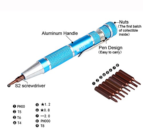 BSTPOWER 9 in 1 Pocket Pen Style Complete Screwdriver Set with 5 Point Pentalobe Phillips Torx T4 T5 T6 T8 for iPhone Macbook
