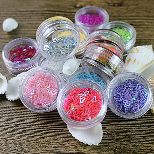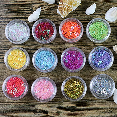 Lasten® 24 cols Manicure Glitter Confetti, 3D Glitter Confetti Shapes, Mixed Shapes Nail Art Set, Hollow Solid Heart Confetti, Great for Art Projects, Parties, DIY Crafts & Decoration ※ Convenient to carry: Our Manicure Glitter Confetti is small and exquisite, glitter shakers, with 24 transparent small plastic jars in ONE case, is easy to place and carry.