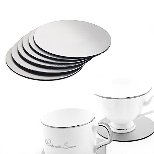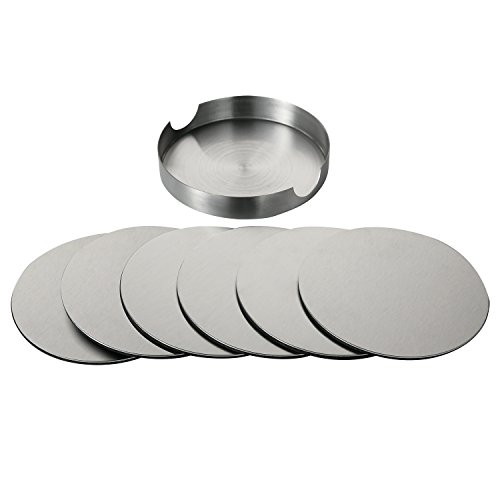 Stainless Steel Round Coaster,Stainless Steel Holder, Silver, Set of 6