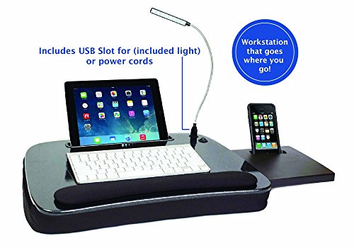 -. Binding : Office Product -. Brand : Sofia & Sam -. Feature : Includes tablet slot that fits tablets 9.6 inches or smaller and smart phone slot that fits mobile devices 3.5 inches or smaller / Slide out Mouse Deck that pulls out on either the left or right side of the desk / Cool and comfortable design with built in wrist rest and handle for portability / Workstation that goes where you go / Large work surface of 18.5" x 14" x 3.5" -. Label : Sofia+Sam -. Manufacturer : Sofia+Sam -. MPN : MultiDesk-Parent -. PackageQuantity : 1 -. PartNumber : MultiDesk-Parent -. ProductGroup : Office Product -. ProductTypeName : OFFICE_PRODUCTS -. Publisher : Sofia+Sam -. Studio : Sofia+Sam -. Title : Sofia + Sam Multi Tasking Lap Desk