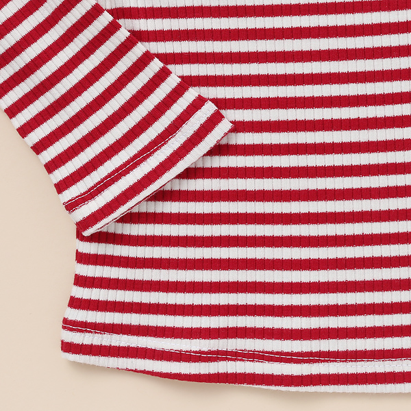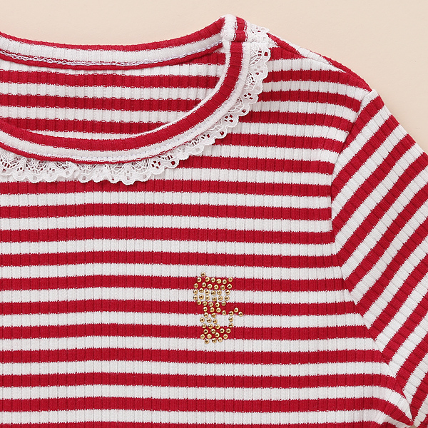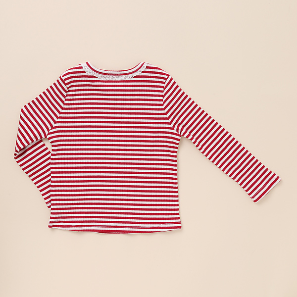 상품설명 입기에 편안하고 캐주얼한 골지 원단을 사용한 심플한 라인의 레드 스트라이프 기본T입니다. 목에 레이스 테잎 장식으로 러블리한 느낌을 주었습니다. 원피스 레이어드 용, 치랭스, 데님팬츠와 코디하시기 좋은 데일리 아이템입니다.