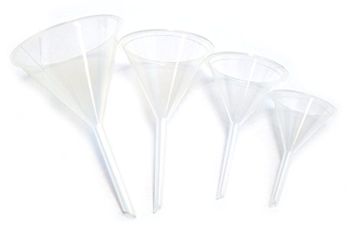 -. Feature : This funnel set has 4 funnels included in it. / All funnels are chemically resistant / These can be used in the class room, kitchen, workshop or garage. / Durable plastic / Easy to clean