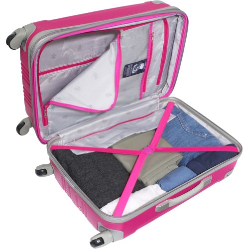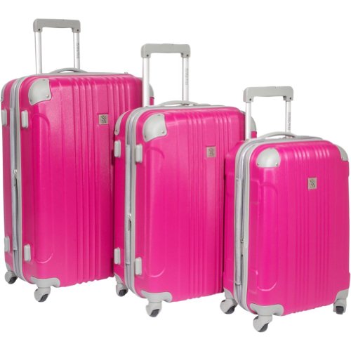 Studio : Travelers Choice Publisher : Travelers Choice Binding : Misc. Product Description The beverly hills country club malibu 3-piece hardside spinner luggage set features unique 4 corner riveted protective shells that protect not only your belongings, but also enhance the overall durability. It is built from abs composite, which flexes to absorb impact and then returns to its original shape when under stress. The aluminum self-locking telescopic handle has push-down locking for easy, single-hand use. The 4 wheel spinner system provides the smoothest and most effortless movement for your life on the go. The interior is fully lined with multi-use organizational pockets and shoes pockets for easy packing. The interior zippered compartment gives you privacy to store your personal belongings and the elastic tie-down straps provide additional support for your clothing during travel. The beverly hills country club malibu 3-piece hardside spinner luggage set is expandable for up to 25% additional packing capacity. 0