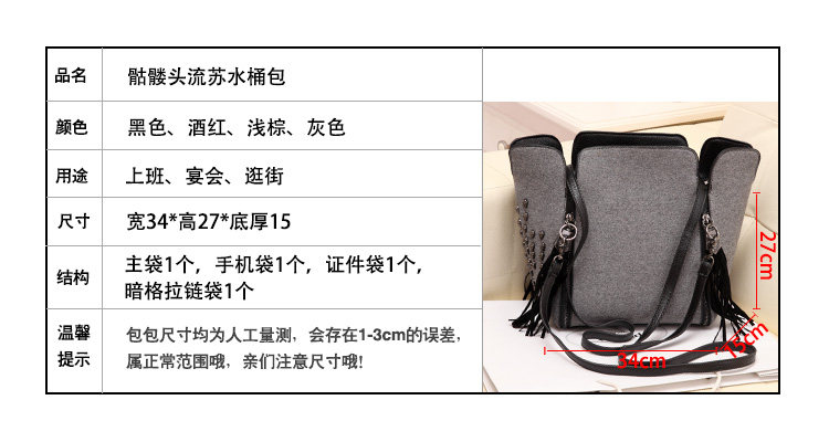 European and American retro fashion trend skull tassel bucket