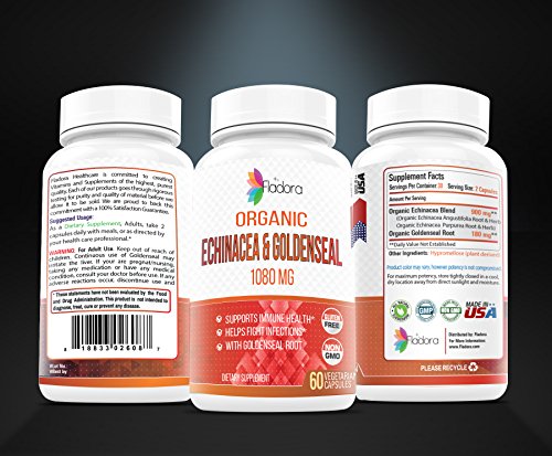 -. Title : Organic Echinacea with Organic Goldenseal 1080mg - 60 Vegetarian Capsules - Supports Healthy Immune Function and Overall Well-being - by Fladora