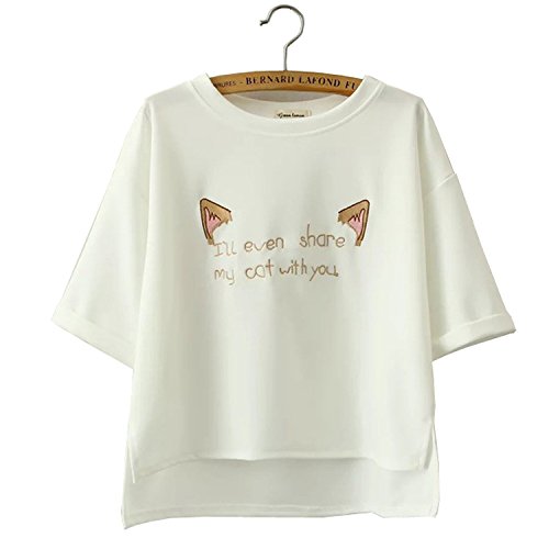 -. Title : (エスライフ)S-Lifeeling レディース Tシャツ オリジナル ねこみみ柄 無地 ポロシャツ 可愛い デザイン 半袖 ラウンドネック プリント ティー シャツ