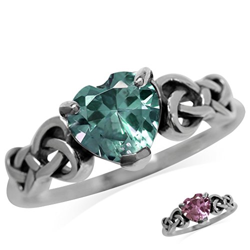 -. Title : Heart Shape Simulated Color Change Alexandrite 925 Sterling Silver Celtic Knot Ring