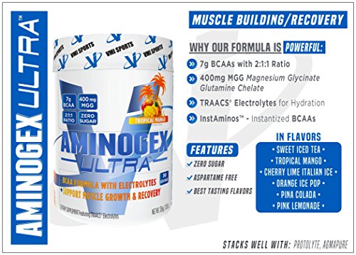 AMINO ACID SUPPLEMENT POWDER: Like all VMI Sports' nutritional supplements, our BCAA powder is formulated to boost your workouts. With pure betaine for greater strength, Aminogex Ultra improves your hydration & endurance for better performance & recovery.