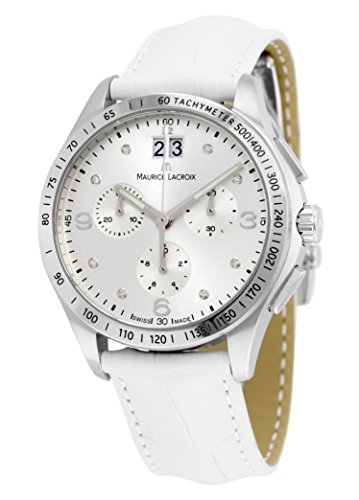 -. Feature : Stainless steel case with a white croco-calf leather strap. / Fixed - tachymeter bezel / Silver dial with silver-toned hands and 8 diamond (0.04 ct) hour markers / Minute markers around the outer rim.