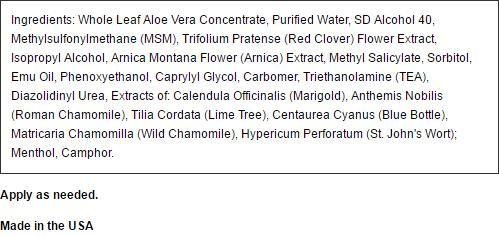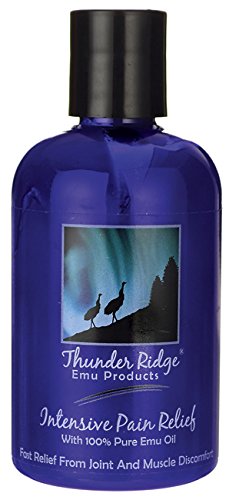 ReleaseDate : 2014-12-20 Studio : Thunder Ridge Emu Products Publisher : Thunder Ridge Emu Products Binding : Health and Beauty Product Description Thunder Ridge Emu Products Intensive Pain Relief. Description: With 100% Pure Emu Oil. Fast Relief From Joint and Muscle Discomfort. Emu Oil carries this soothing gel into tired aching joints and muscles relieving the discomfort of stress, tension and tired muscles. Disclaimer: These statements have not been evaluated by the FDA. These products are not intended to diagnose, treat, cure, or prevent any disease. 0