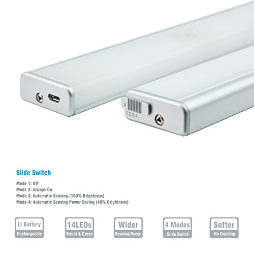 Veepeak Rechargeable 14-LED Motion Sensor Light Night Light for Closet, Cabinet, Pantry, Counter, Bathroom, etc. - Wireless Motion Activated, Stick On Design and 4 Mode On/Off Switch