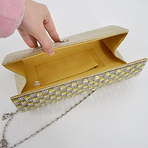 Made of high quality rhinestone and satin; glitter and glossy to look, very comfortable and durable to use. Rhinestone decor looks so shiny and fashionable, dresses up you charming and outstanding in the crowd. Long chain strap adds beauty and also provides convenience to carry. Product size: 9.6 * 2 * 4.1in. Small but exquisite, can easily fit your cell phone,sunglasses, car keys, mirror, lipstick and other small things. Great gifts for women. Perfect for evening, party, wedding and bridal.