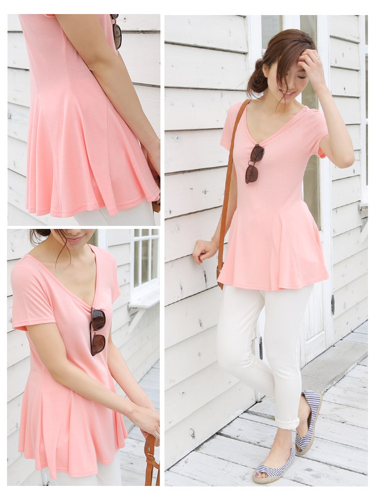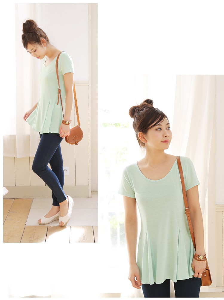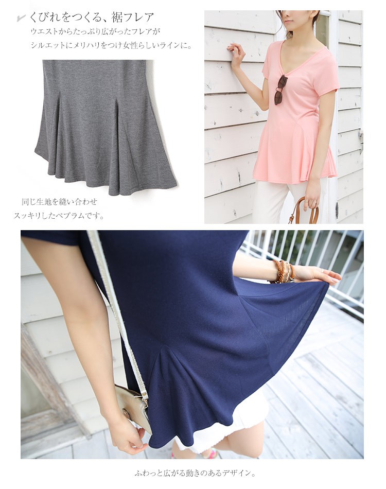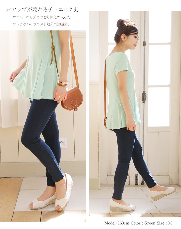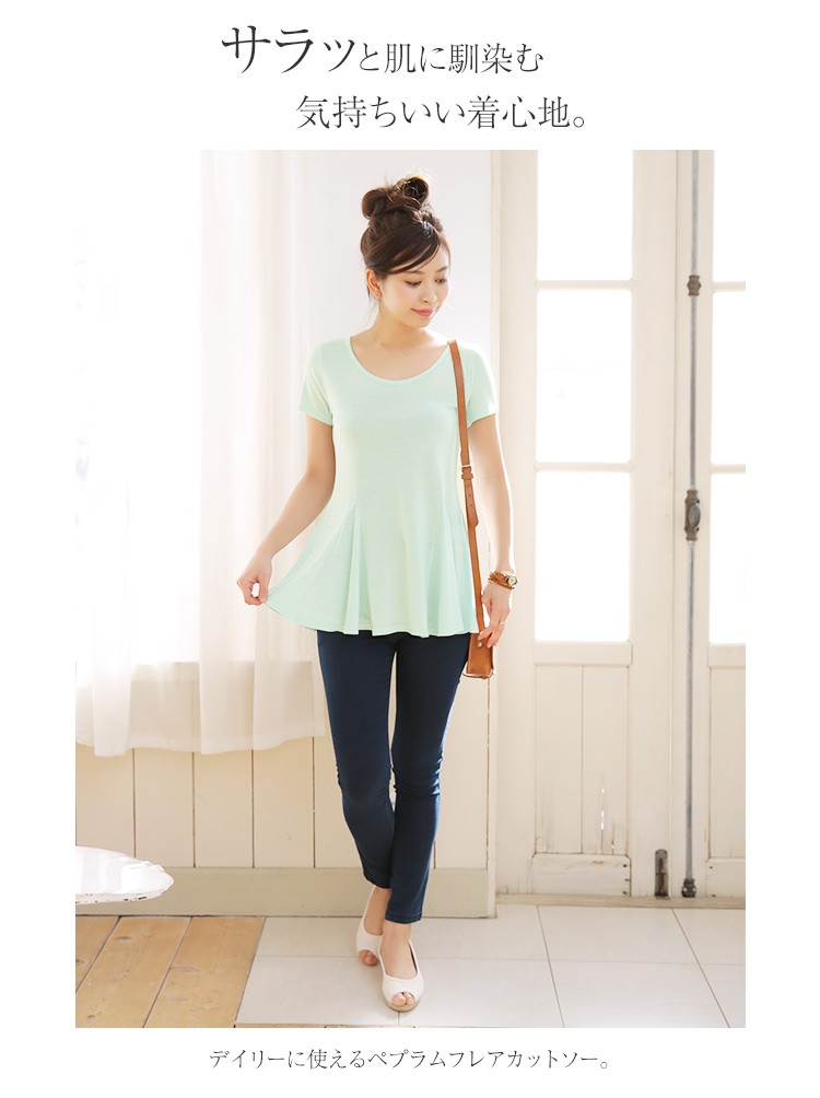 ペプラムはほどよくフィットして、胸下から広がるシルエットで