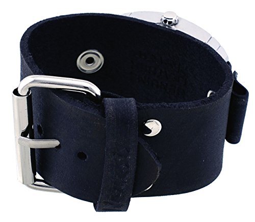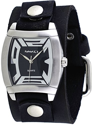 Nemesis #FGB067K Women's Rugged Collection Black Wide Leather Cuff Band Wartch