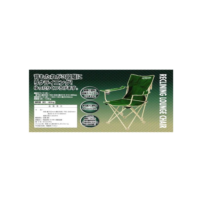 원본상품명: キャプテンスタッグ チェア CS リクライニングラウンジ チェア グリン M-3885