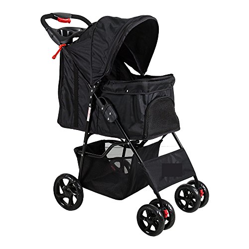 -. Binding : Misc. -. Brand : Lucky Tree -. Feature : Durable steel frame; Folding design for easy storage and transportation. / 360 degree swivel front wheels ; Rear wheels with brakes, easy stop and easy walk. / Air vents on top, front and back make your pet breath freely; front and back have zipper, you can open it to take care of your pet. / Large capacity; two safety belts inside with more protection / Handrail designed with tray and saucer; Large accessory basket -. Label : Lucky Tree -. Manufacturer : Lucky Tree -. PackageQuantity : 1 -. ProductGroup : Pet Products -. ProductTypeName : PET_SUPPLIES -. Publisher : Lucky Tree -. Studio : Lucky Tree -. Title : Lucky Tree Pet Stroller Folding Pet Cat Carrier Travel Cart With Four Wheels