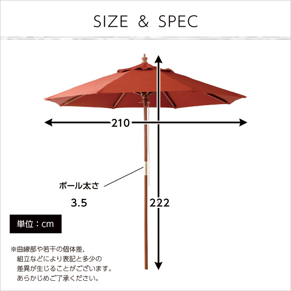 天然木 木製パラソル 210cm【ソナタ-SONATA-】パラソル 撥水 天然木