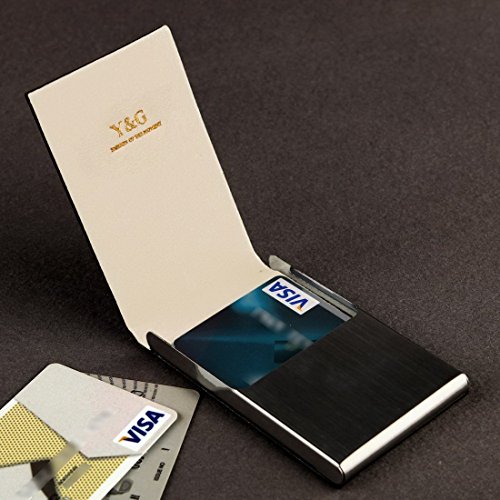 -. Feature : Brand Name: Y&G / Material: Stainless Steel, Leather,PU / Size: Card holder--9.4*1.3*6CM / Package : Free Gift Box Set / Set Including: Business card holder