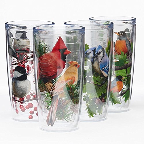 Set of 4 Cardinal, Blue Jay, Robin and Chickadees Traveler 16 Oz Tumbler Cups