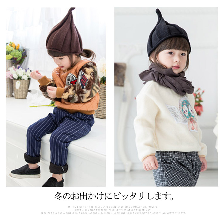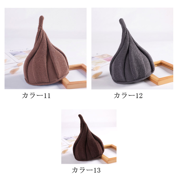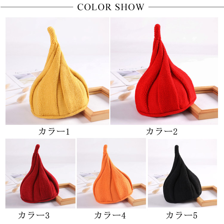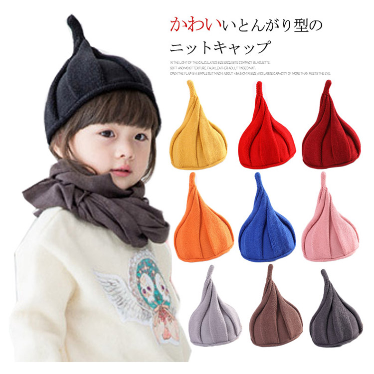 | かわいいとんがり型のニットキャップ一味違うニット帽でコーディネートが楽しめそうなアイテムです。冬のお出かけにピッタリします。これからの季節にお勧めです。 | |