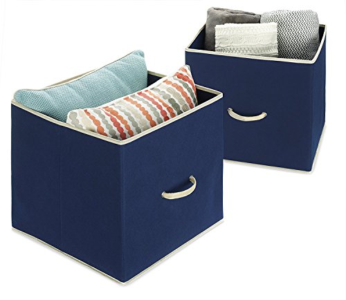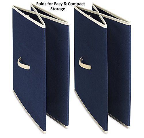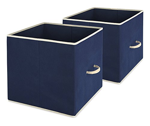 Whitmor Collapsible Storage Bin, Set of 2 - Foldable Cloth Storage Cube – Perfect Organizer for Playrooms, Living Room or Bedroom – Space Saving Design – Durable – Color Navy by