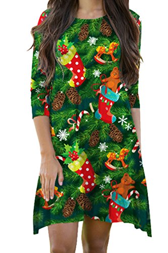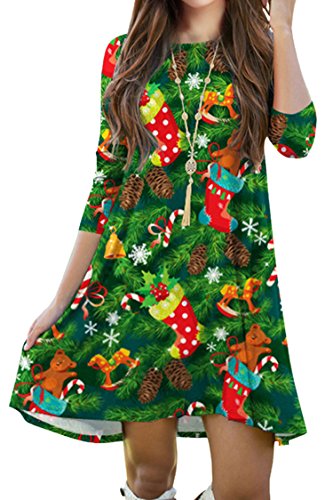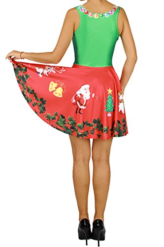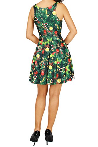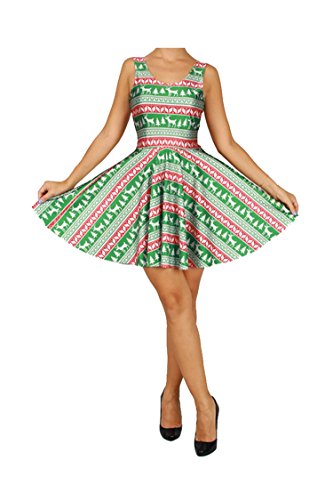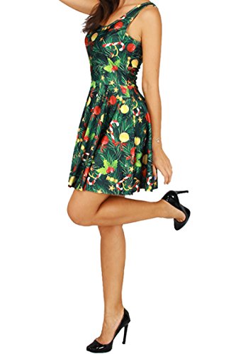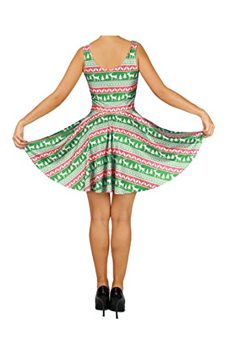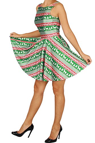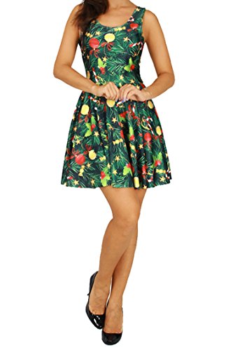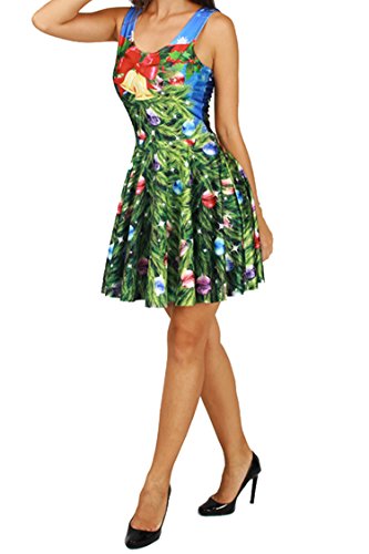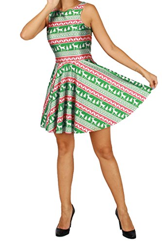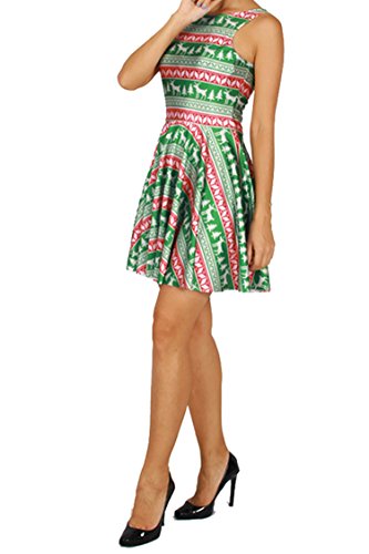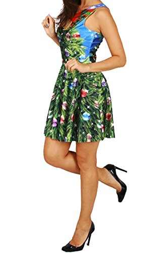 Pink Queen Women's Christmas Gift Green Tree Skater Dress A Line Flared Dresses, Pattern 4, One Size