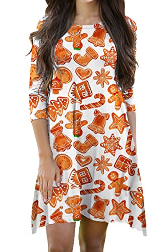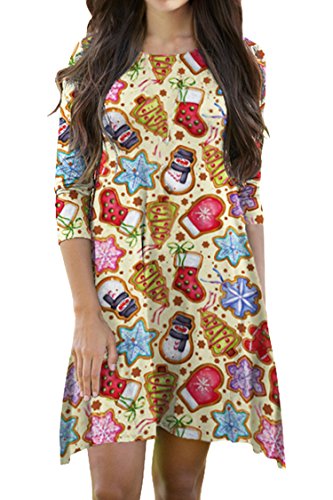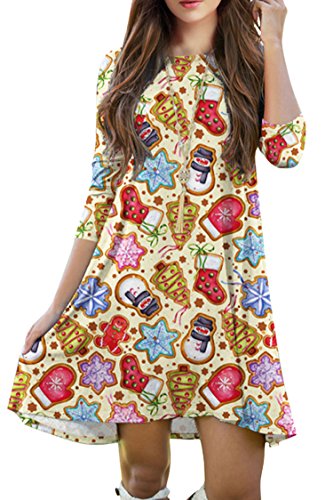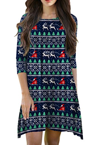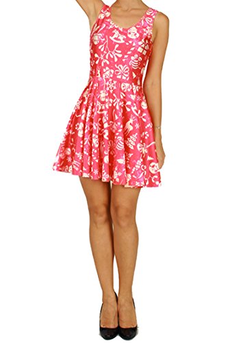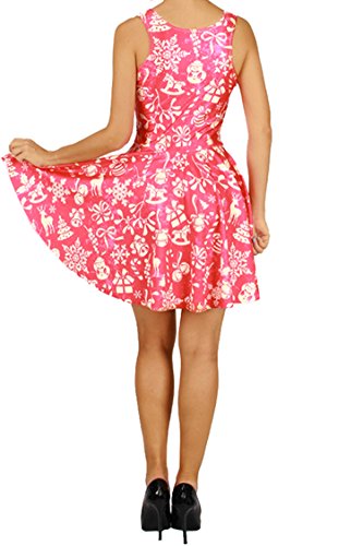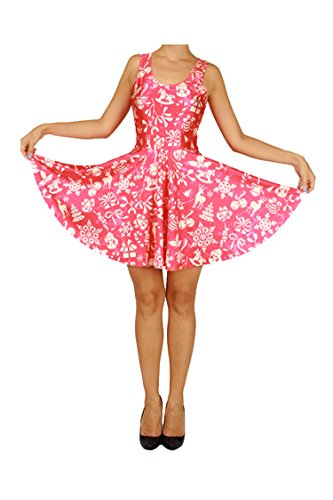 Pink Queen Women's Christmas Costome Skater Dress Printed Mini Flared Dresses