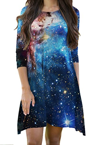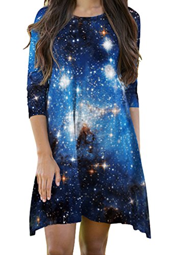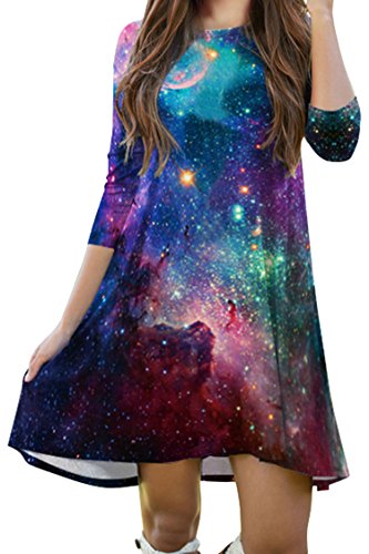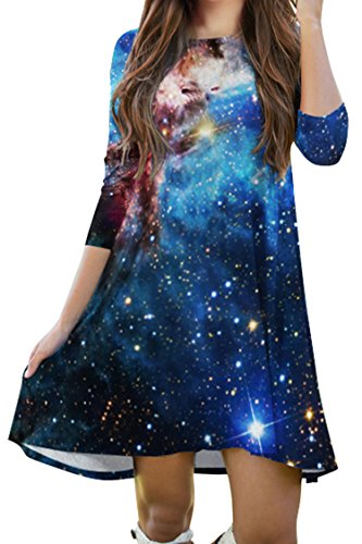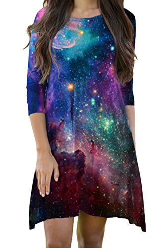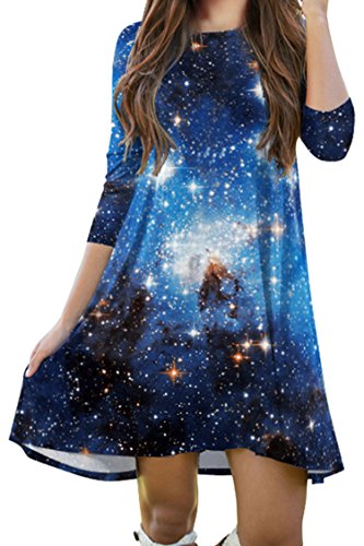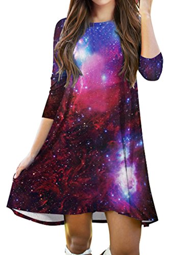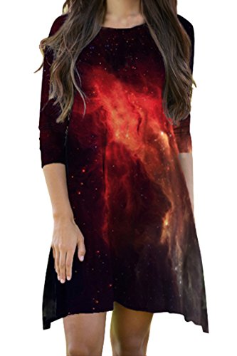 Pink Queen Women's Crewneck Casual Digital Printed Swing Skater Flared Dress,Pattern 40, OneSize.