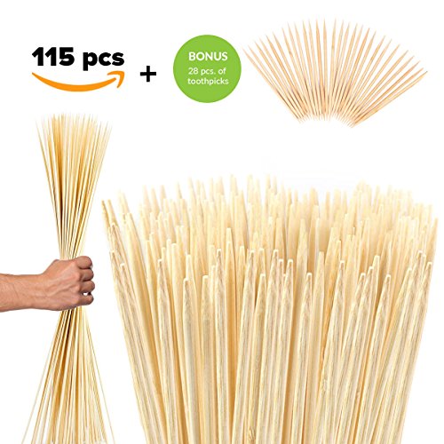 You will get 115pcs of bamboo sticks with 28 toothpicks as a bonus