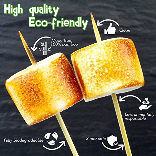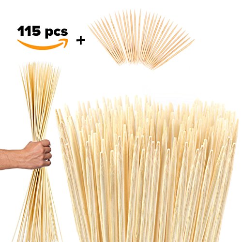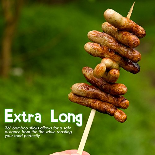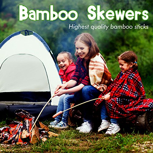 Bamboo Marshmallow Roasting Sticks Kebab Barbecue Skewers 115 Pieces 36 Inch Long 6mm Extra Thick Heavy Duty Wooden Environmentally Safe 100% Biodegradable S’mores Sticks Bonus Included Outdoor Fun