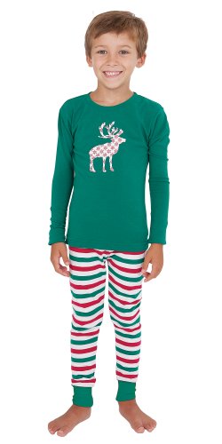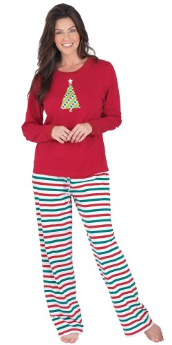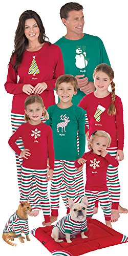 Trim the tree and sing carols with glee in the super-festive PajamaGram Red and Green Holiday Stripe Matching Family Pajamas. With a size and style for every single member of the family ? from newborns to grownups ? these Christmas PJs are a must-buy for the Christmas-crazy crew. Each pair comes with a pair of comfy striped pajama pants with a long-sleeved thermal top adorned with a unique Christmas graphic. The men's size features a snowman, the women's size features a Christmas tree, the boys' size features a reindeer and the infant and toddler sizes feature a snowflake. Or adorable Christmas pet pajamas feature all-over stripes. For child's safety, children's sleepwear should be snug-fitting or flame resistant. This garment is snug-fitting. Please order size accordingly. - Made of 95 percent cotton, 5 percent spandex jersey