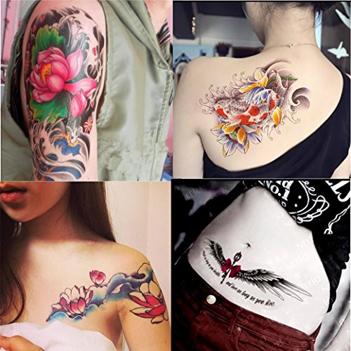 -. Title : Dalin 4 Sheets Fashion Temporary Tattoos, Lotus, Fish, Wings, Sexy Lady
